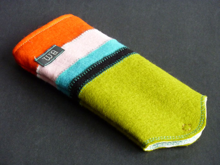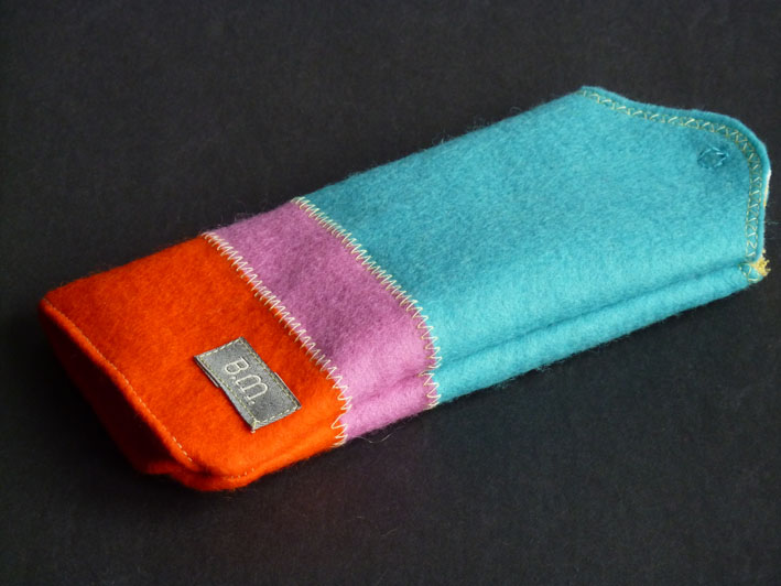 Ganz nach dem Motto „Das Leben ist bunt“ sind die Brillenetuis, Modell „Lucky Stripes“ genäht. Jedes Modell ist ein Unikat. Ausgekleidet sind die Brillenhüllen mit einem Baumwollstoff. Ein unauffällig integrierter Druckknopf verhindert, dass die Brille versehentlich aus der Hülle rutscht.