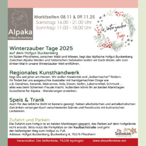 Anfang November lädt Janine Schütz (von der Seifenkiste in Ispringen) auf den Alpakahof auf den Pforzheimer Buckenberg ein.